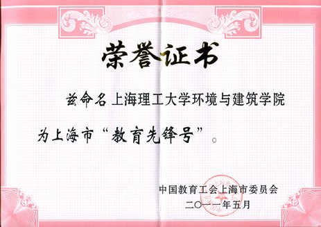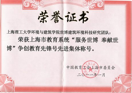 2011上海理工大学环境与建筑学院世博建筑环境科技研究团队荣获上海市教育系统“服务世博奉献世博”争创教育先锋号先进集体称号