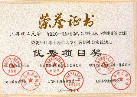 2011年上海市大学生暑期社会实践活动优秀项目奖