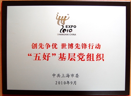 2010环境与建筑学院党总支荣获上海市“创先争优世博先锋行动‘五好’基层党组织”