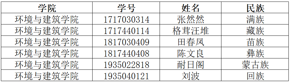 经学生自主申请,学院审核认定,2020-2021学年少数民族学生奖学金审核评定工作已经结束,现将名单予以公示,公示期为2020年11月16日-11月18日,公示期内,如对以上获评同学有异议,可来电、来信、来访。