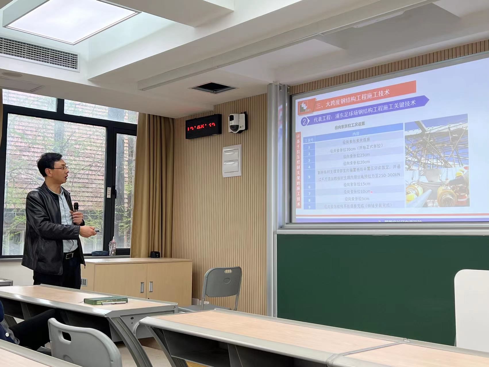 为提升新工科背景下土木工程系学生的就业优势,增强学生在人工智能快速发展时代对土木工程智能化技术的了解,4月4日土木工程系教工党支部依托“校企产教融合、协同育人”的学生培养新模式,邀请上海市机械施工集团有限公司副总裁、总工程师、教授级高级工程师贾宝荣来校为土木工程专业师生作了“大型复杂钢结构工程建造与智能化(含上海中心)”的学术报告。环境与建筑学院副书记曹桂馥,土木工程系刘琼等多位老师与学生现场聆听了报告。会议由土木工程系副主任张菊辉主持。