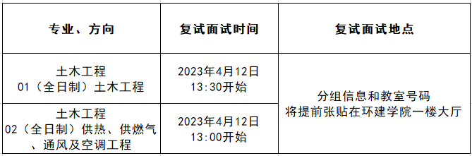 按照教育部《2023年全国硕士研究生招生工作管理规定》、《2023年上海市硕士研究生复试工作指导意见》,根据《上海理工大学2023年硕士研究生招生复试办法》,组织环境与建筑学院硕士研究生招生调剂考生复试(含笔试和面试),安排如下: