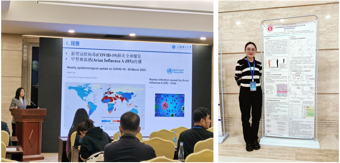 我院建环系孙婵娟和刘帆两位老师参加了此次学术会议。其中,孙婵娟副教授作了题为“社交距离模型在呼吸道疾病传播中的理论和经验研究”,刘帆老师参与了题为“不同类型建筑室内分层及其对SARS-CoV-2空气传播风险的影响研究”的墙报展示。