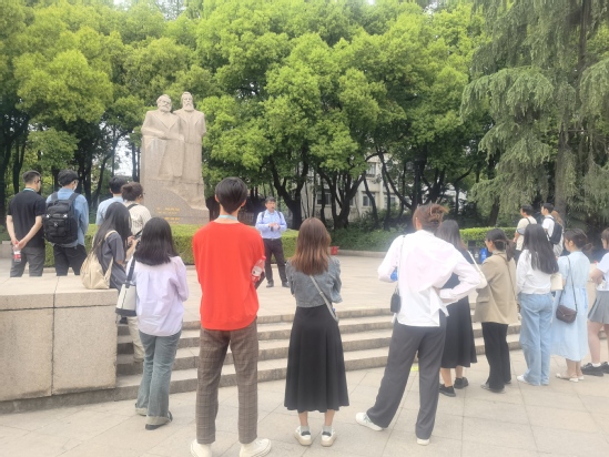 培训班邀请了国家金牌导游唐晨为大家带来行走的主题党课“从渔阳里到中共一大”。下午,大家在复兴公园的马克思与恩格斯的雕像前,感受先辈之精神,激励青年之壮志。大家漫步梧桐树荫,沿着革命先辈的足迹,从思南路到兴业路,从渔阳里到中共一大,瞻仰国共第一次合作上海执行部、新青年编辑部旧址、科学会堂、大同幼稚园,唐晨老师讲述了在红色遗址上的建党伟业、百年前为黑暗腐朽的旧中国苦苦求索出路的青年“觉醒者”的故事,阐述他们确立及追寻马克思主义信仰的艰辛和无畏的探索精神。