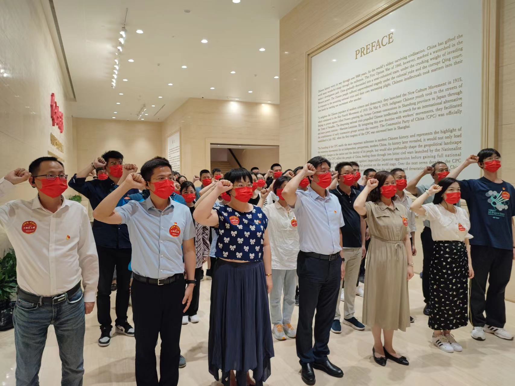 党员们来到中共一大会址和纪念馆,开启寻访红色足迹之旅,感悟初心力量。1921年7月23日,在上海市卢湾区兴业路一栋典型石库门式样的建筑中,10多位热血志士汇聚于此,召开了中国共产党第一次全国代表大会,于无声处,改变了历史——中国共产党宣告成立。红色诞生之地庄严而朴素,不远处高楼林立的繁华盛景正是由此孕育而出,并不断伸展。党员们在讲解员的带领下,依次参观各主题展区,时而驻足凝望这些珍贵的文物,认真听着讲解员讲述。每一件文物和每一张照片背后都有感人的故事、鲜活的细节,也都承载着中国共产党从弱小逐步发展壮大、经历艰难险阻而一次次绝境重生、在攻坚克难中迎来一个又一个胜利。通过参观学习,查看史料、瞻仰遗迹,党员们详细了解了中国共产党的成立历程,切实感受先辈们不屈不挠,怀抱理想,敢于改革、敢于创新、敢于斗争的革命精神。