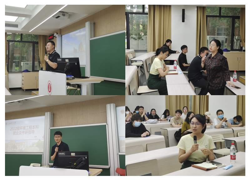 谷麟首先就当前环境工程专业本科就业形势、毕业生就业去向、考研动态与趋势进行了介绍与分析,对同学们考研与就业上存在的问题进行了深入、细致的分析。随后张晓东就考研准备过程中的问题进行了详细的分析,对同学们普遍关心的保研名额、资格与跨专业考研问题进行了介绍;黄蓓佳进一步就本专业研究生招生政策进行了宣讲,对同学们在考研准备过程中的技巧、注意事项进行了细致、耐心的讲解。最后,系主任陶红再次强调了当前形势下2020级同学在考研与就业中存在着前所未有的挑战与机遇,对大家在未来一年的准备工作提出殷切的希望与嘱咐,就如何提高自身实力、如何在考研中脱颖而出以及如何选择合适的深造单位向与会学生进行了详细以及生动的介绍;她强调全系教师要凝心聚力,发挥自身优势,带领2020级环境工程全体本科生圆满完成学业以及就业工作。