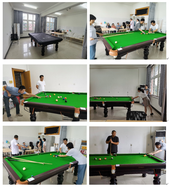 为了照顾并不熟悉桌球的老师们,此次比赛活动特意设置了简单规则:每人有10杆机会,用母球将球击入标有分数的袋中即可得到相应分数,通过累加的总分高低进行排名。通过几天的比赛,最终得分较高,且台球基础较好的几位老师在比赛之余还进行了一对一的美式落袋表演赛。此次活动总共吸引了40余名环建学院的教师参与。整个趣味桌球赛活动在一片欢声笑语中成功举行,真正起到了放松各位老师身心的作用,放松之余也增进了大家的交流,让大家可以更好的工作,发光发热。