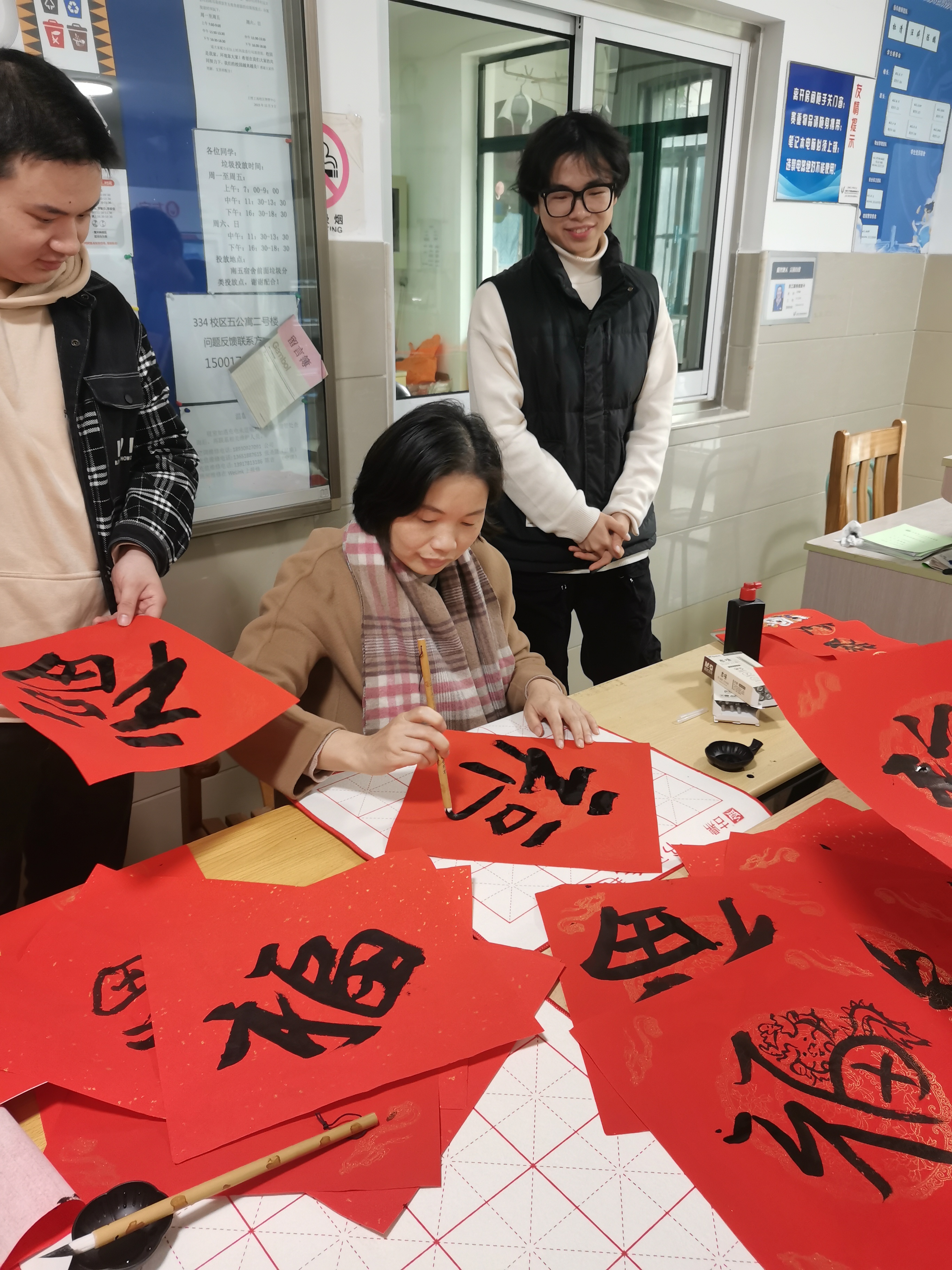 元旦将至,为弘扬和传承中国传统文化,营造“向上向善向美”的宿舍氛围,12月27日环境与建筑学院在五公寓二号楼开展主题为“龙腾虎跃,福运满堂” 迎元旦送福送春联活动,驻楼团队老师、宿管阿姨和同学们共同参与了此次活动。