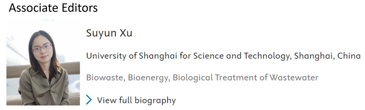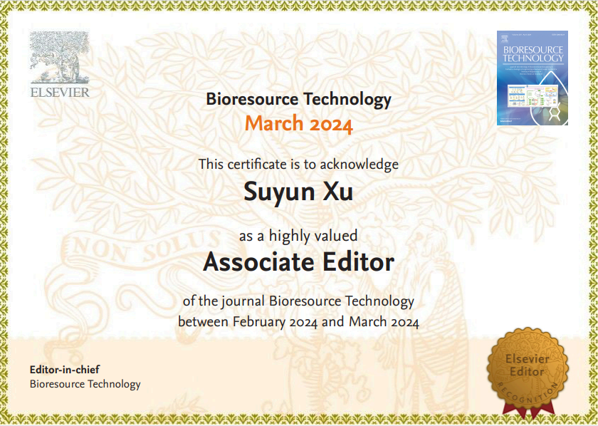 近日,环境与建筑学院徐苏云副教授受邀担任国际SCI期刊Bioresource Technology(BITE,ISSN 0960-8524)副主编(Associate Editor),协助主编组织专家评审相关专业领域的稿件并努力发掘高质量稿件。