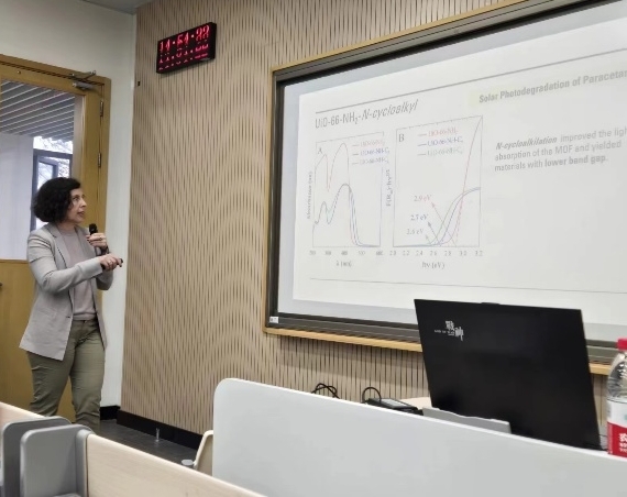报告中,Jorge Bedia和Carolina Belver教授通过深入的理论分析和生动的案例举证,深入介绍了高级氧化技术中光催化的基本概念和MOFs的光催化剂的应用。其中,Jorge Bedia教授深入介绍了利用载体和互补半导体的互补特性来改善TiO2的性能,从而改进光催化系统的相关研究成果。而Carolina Belver教授主要介绍了基于MOFs的光催化剂降解新污染物的设计,用于利用太阳辐射去除新兴的污染物,以及改善其光催化性能的各类研究成果。两位教授的报告都特别关注提高光催化效率及其稳定性和未来前景的战略,并以期刊主编的视角对论文期刊写作和投稿进行了详细介绍。