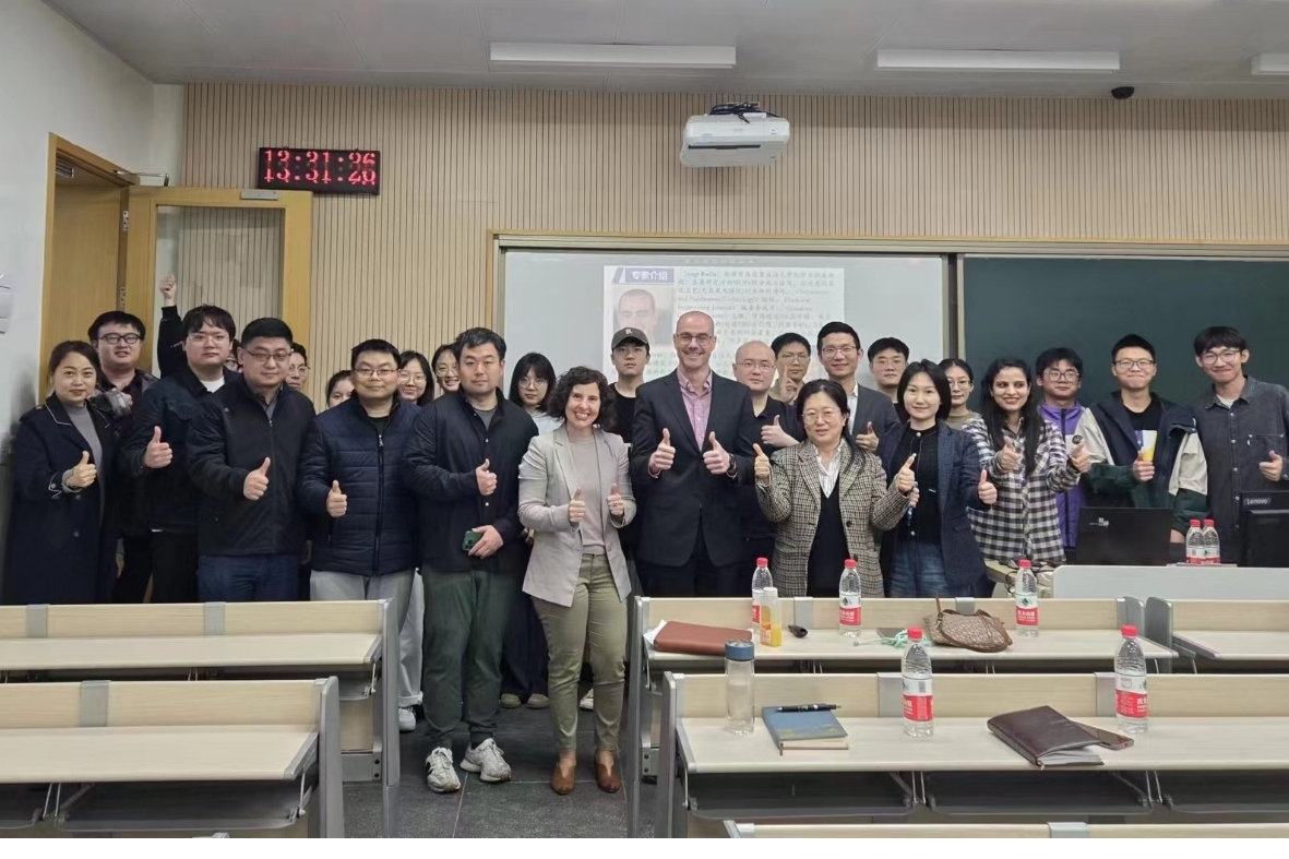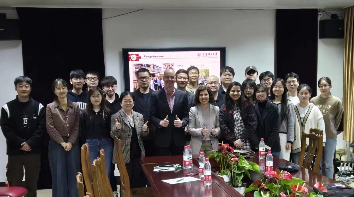Jorge Bedia和Carolina Belver教授还听取了上海理工大学李聪教授课题组的硕士和博士的学术汇报,并给出了指导性意见,期望后续能进一步加强国际间学术交流,共同促进学科建设与发展。最后,Jorge Bedia和Carolina Belver教授与上海理工大学环境与建筑学院李聪教授、高玉琼副教授、常飞副教授、张云澍讲师连同他们的学生在讲座会场进行了留影纪念。