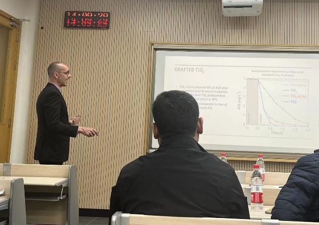 4月12日下午,应环境与建筑学院及李聪教授邀请,西班牙马德里自治大学化学工程系、SCI一区期刊(Applied Catalysis B: Environmental and Energy,Separation and Purification Technology, Chemical Engineering Journal和Catalysis Communications)主编Jorge Bedia和Carolina Belver教授分别为我校学子作题为“TiO2 heterostructures for the photocatalytic treatment of water”和“Degradation of emerging contaminants using sunlight photocatalysts based on MOFs”的前沿讲座。环境与建筑学院相关专业数十余位师生代表参加了本次讲座,讲座由环境与建筑学院李聪教授主持。