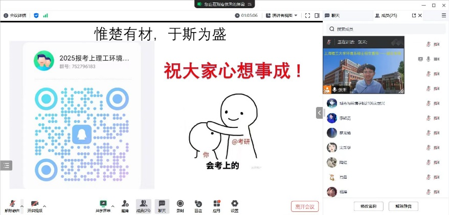 宣讲会以政策解读、座谈交流、观看宣传片等方式开展,宣讲团队教师与参会高校师生开展了深入交流,详细介绍了上海理工大学环境科学与工程系的招生专业、导师信息、报考流程以及“优秀大学生暑期夏令营”的整体情况。同学们积极参与互动,针对专业方向选择、就业前景、夏令营开营时间、奖学金设置等进行了咨询提问,宣讲团队老师对相关问题给予了细致的解答,鼓励优秀学生积极报考。