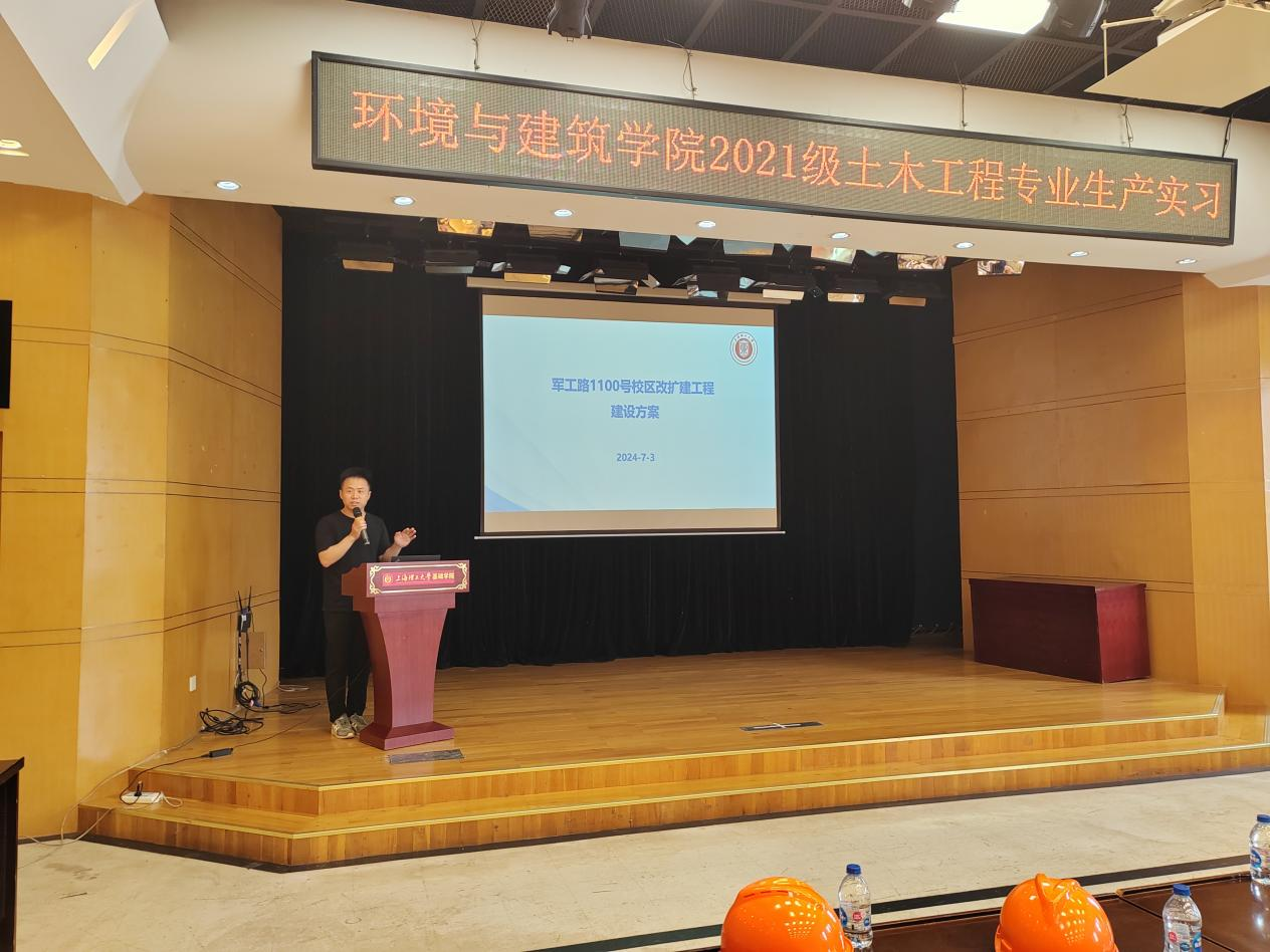 7月3日,由环建学院副院长饶平平教授带领 2021级土木工程专业全体学生,依托本校1100号校区新建工程项目开展施工生产实习。本次实习全面围绕工程建设展开,旨在推动理论教学与实践紧密结合,强化技术应用,实现学以致用、学能致用的目标,通过与现场工程技术人员的互动交流,深入了解工程项目规划、设计、施工与管理等方面的知识。