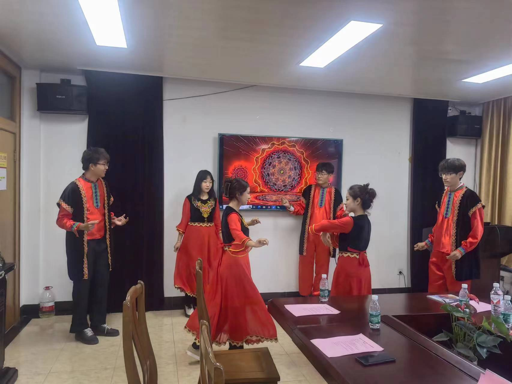 来访师生代表做红色资源和中华优秀传统文化展示,现场跳起了新疆舞,与会师生积极参与互动,现场气氛活泼融洽。会后,双方互赠纪念品并一同参观了上理校园。