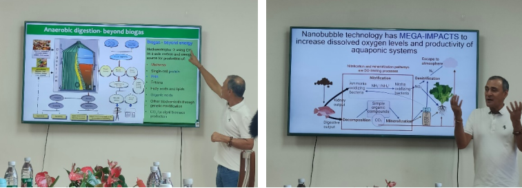 在讲座中,萨米尔教授从厌氧消化产沼气技术近年来的研究热点,引申到机器学习在厌氧过程中的应用以及未来前景和挑战。随后教授介绍了纳米气泡在2003-2024年不同阶段的发展历程,并展示了他们团队近期关于纳米气泡技术在水培系统和藻类养殖碳捕集等领域的研究进展,并就纳米气泡技术助力食物生产效率提升和碳中和管理提出前瞻见解和展望。