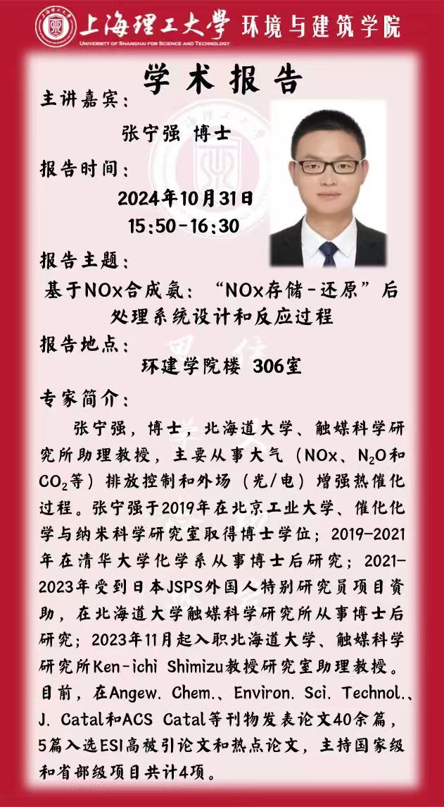 学术报告:基于NOX合成氨:“NOx存储-还原”后处理系统设计和反应过程