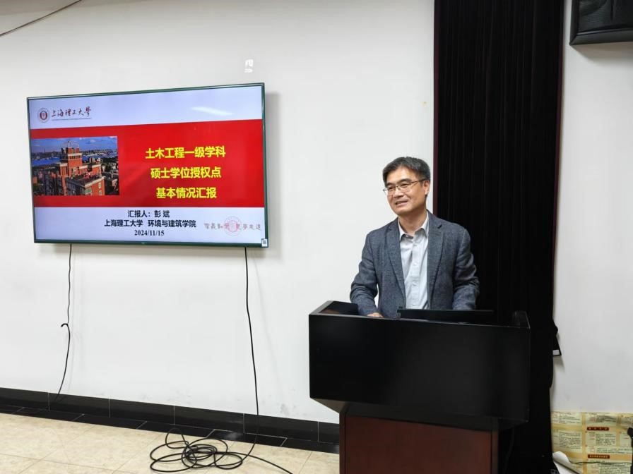 学科带头人彭斌教授代表学科作了土木工程一级学科硕士学位授权点基本情况汇报。汇报从人才培养、师资队伍、科学研究、服务贡献等多方面阐述了学位点近五年的建设成效,并表示学位点将持续以服务国家及长三角区域重大需求为导向,进一步完善人才、团队和平台基地多位一体的学科建设和人才培养体系建设。暖通方向学科带头人王丽慧补充了学位点暖通方向的建设亮点及建设成效,并表示未来将聚焦前沿领域,进一步加强人才培养与科研创新,为推动暖通行业的可持续发展贡献力量。