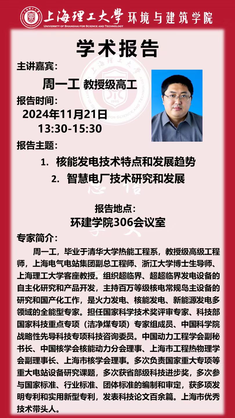 学术报告:1.核能发电技术特点和发展趋势;2. 智慧电厂技术研究和发展