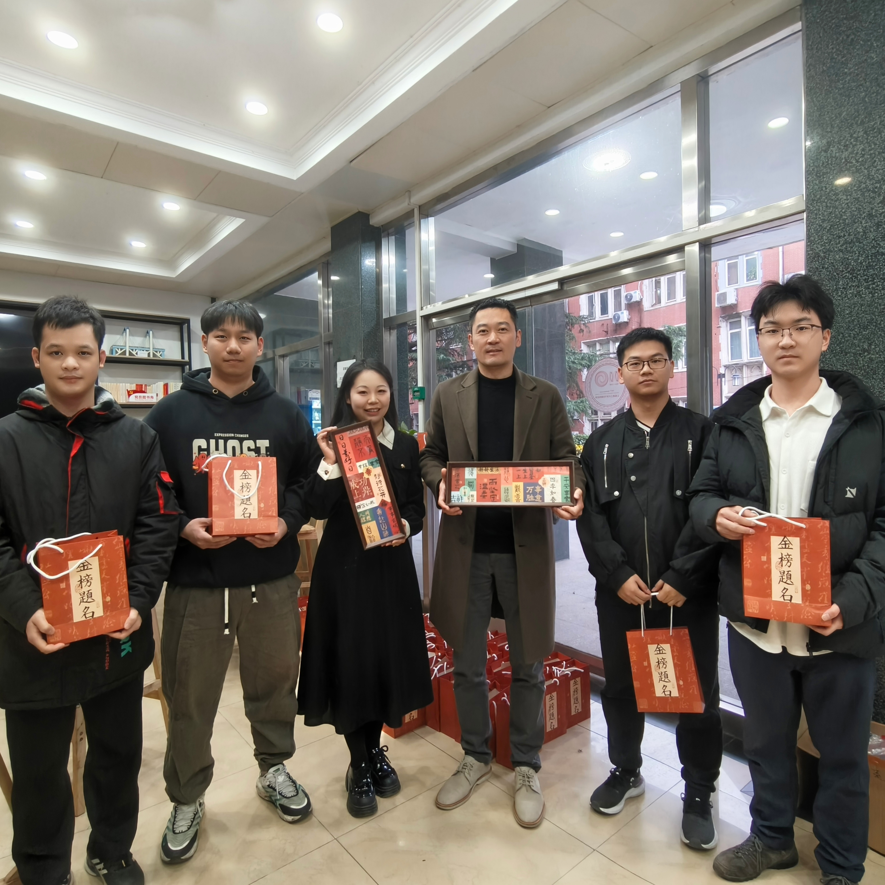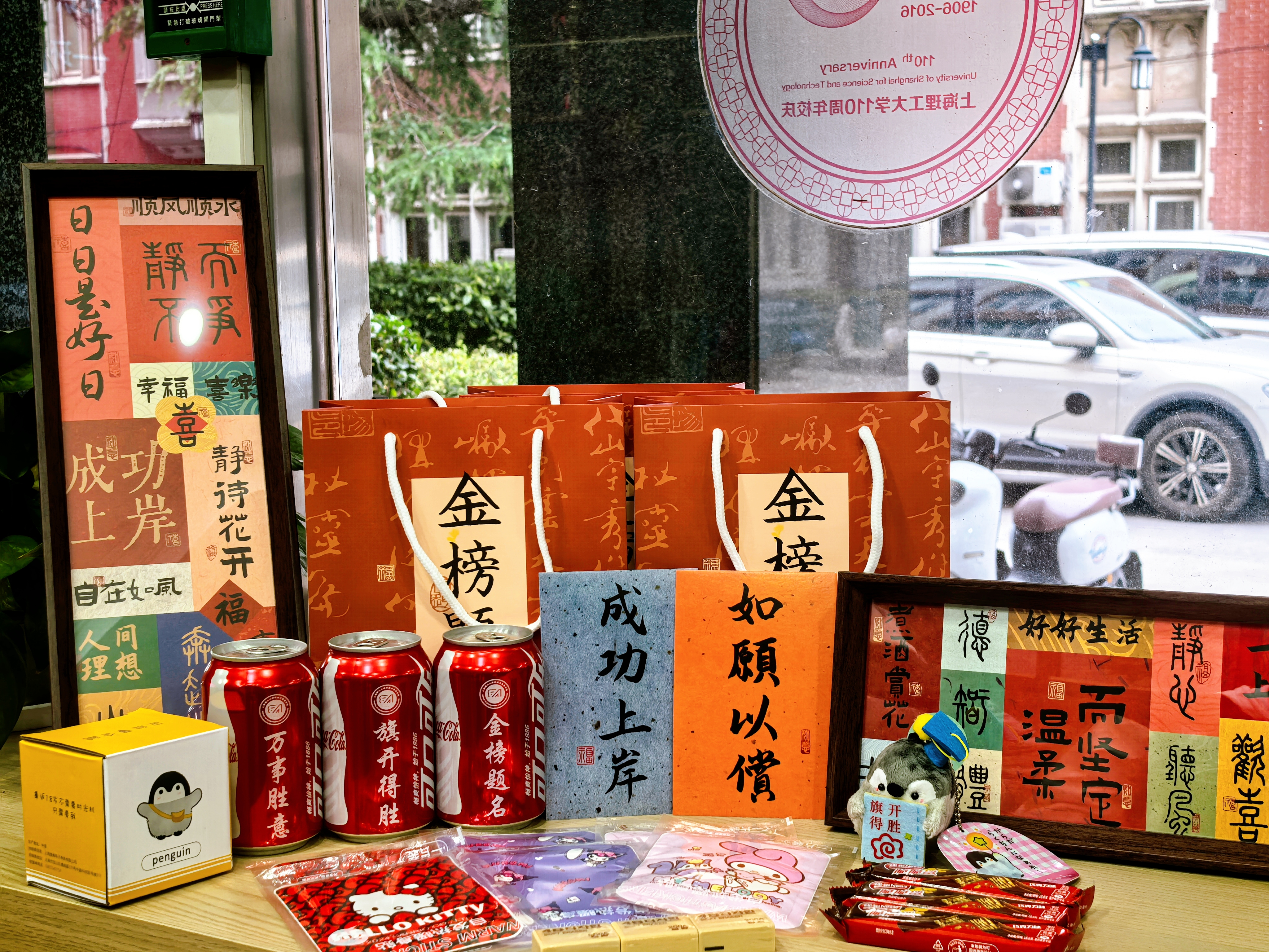 学院为每一位考研学子准备了考试必备的橡皮;小企鹅公仔手举“必胜”,脆脆鲨巧克力棒寓意“巧”克难题、轻松上岸;冬天不可缺少的暖贴代表着环建学院一直温暖随行、为“理”助力;定制可乐和贺卡上的“成功上岸”“如愿以偿”“旗开得胜”“万事如意”“金榜题名”字样都象征着对考研学子的祝福与鼓励。