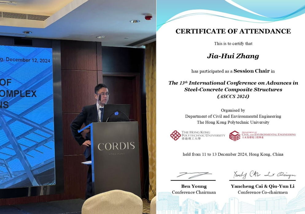 由国际钢-混凝土组合结构协会(ASCCS)主办,香港理工大学承办的第13届钢-混凝土组合结构研究进展国际会议(13th International Conference on Advances in Steel-Concrete Composite Structures, ASCCS2024)于2024年12月11日-13日在香港召开,来自世界各地26个国家和地区的241位专家学者出席了本次会议。我院张佳慧老师受邀作为此次会议组委会成员与分会场主席参加了此次会议,并作主题报告。