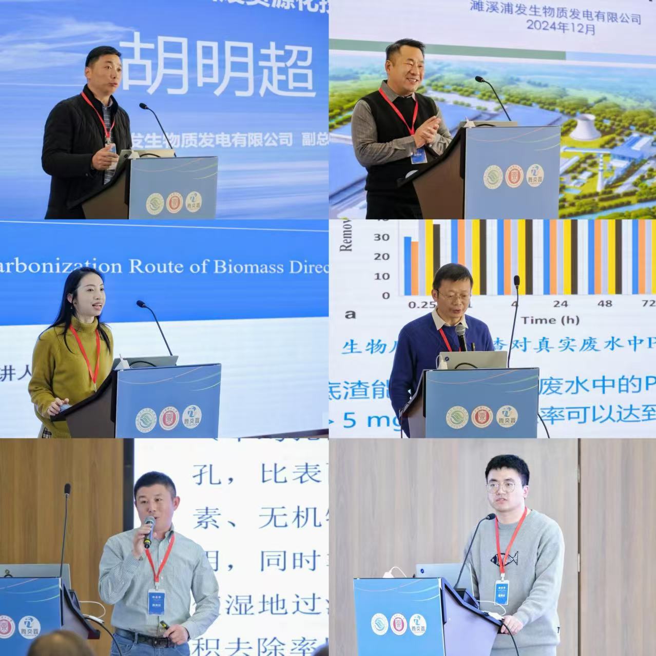 濉溪浦发生物质发电有限公司副总经理胡明超和张彬工程师作为发电行业代表,首先剖析了生物质发电行业现状,点明农林生物质资源不均、灰渣处置难等问题,期望同向发力、精准施治,赋予资源新生命;上海理工大学管理学院潘玲颖副教授结合装机、技术、区域分布、综合效益等方面数据分析,强调了生物质发电在能源转型、保障安全与可持续发展中的重任。同济大学环境科学与工程学院邱宇平教授提出了以农治农新思路,阐述了底渣在农业领域的研究与应用。上海悠理环境科技有限公司张增胜博士详细阐述了生物质功能填料的理论研究及其在人工湿地领域的工程应用,通过案例展示了生物质填料在工程中的显著成效和巨大潜力,提出切实可行的解决方案。上海理工大学环境与建筑学院的俞海祥博士通过生物质灰渣与臭氧协同应用处理新污染物的创新思路,提出了解决生物质电厂固废资源化利用的新策略,为生物质发电固废的资源化利用开辟了广阔应用前景。