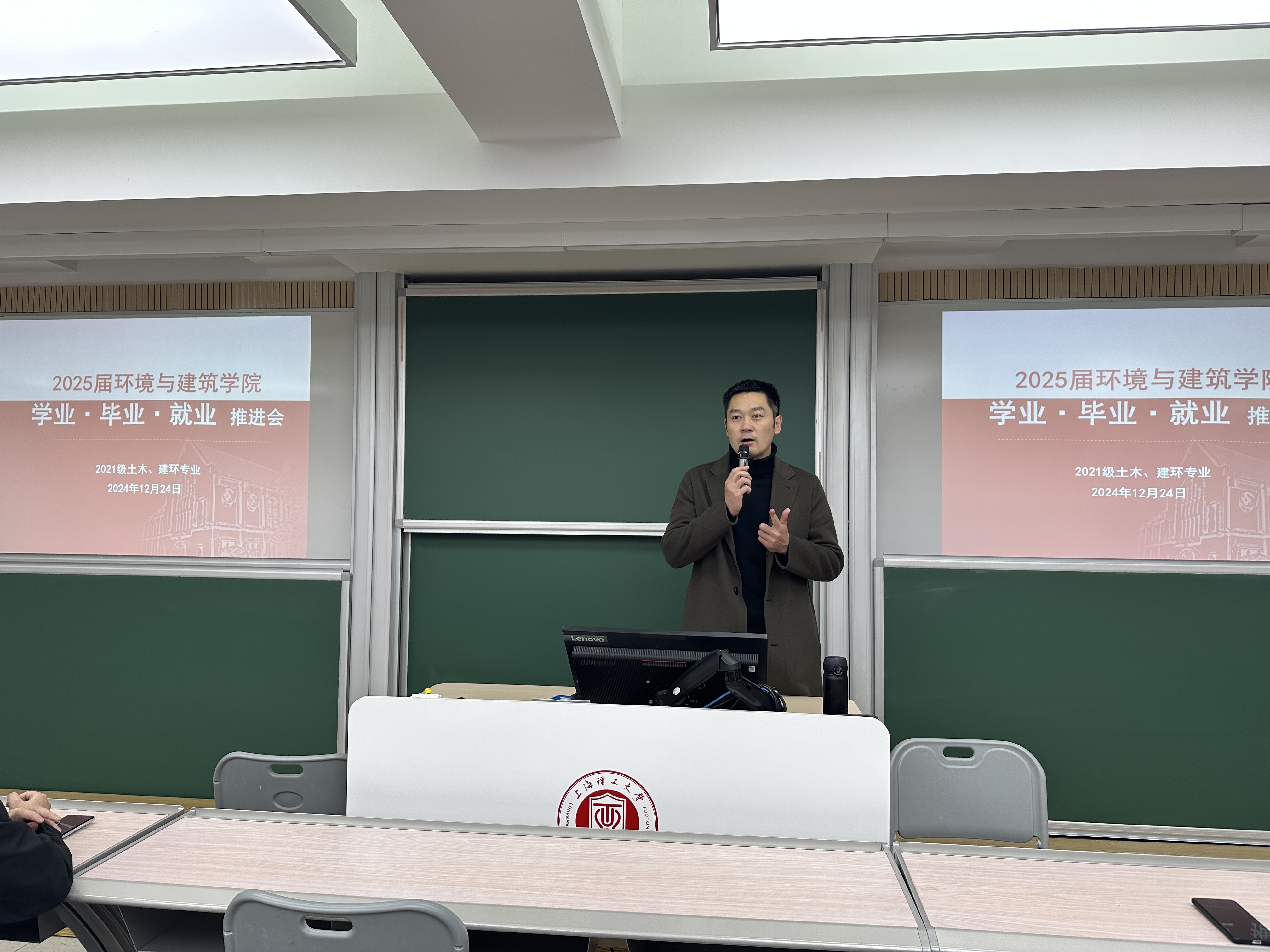 为推进毕业班学生的学风建设和就业指导工作,12月24日,学院学工办联合土木工程系、建筑环境与能源应用工程系,共同举办了2025届本科毕业班学业、毕业、就业工作推进会议。学院党委副书记曹桂馥、建筑环境与能源应用工程系主任王海东、土木工程系副主任李秀君、辅导员及2025届毕业生出席了本次会议。