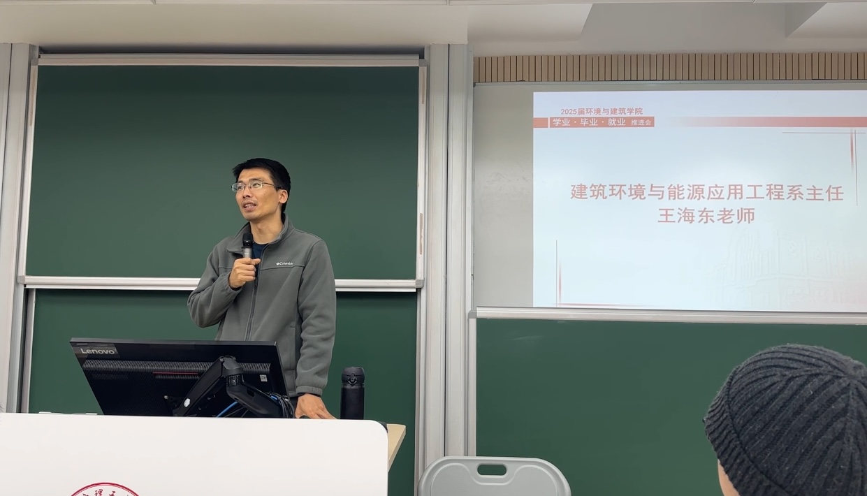 王海东对当下建环专业本科生面临的现状、行业的发展、就业的方向进行了分析,并激励同学们不畏困难勇敢追梦。李秀君结合自身学生工作、教学工作、就业工作中丰富的经验,殷殷嘱托同学们结合自身、运用资源、付诸行动。两位老师用言语和行动给予了毕业班学业、毕业、就业工作最真诚的支持。