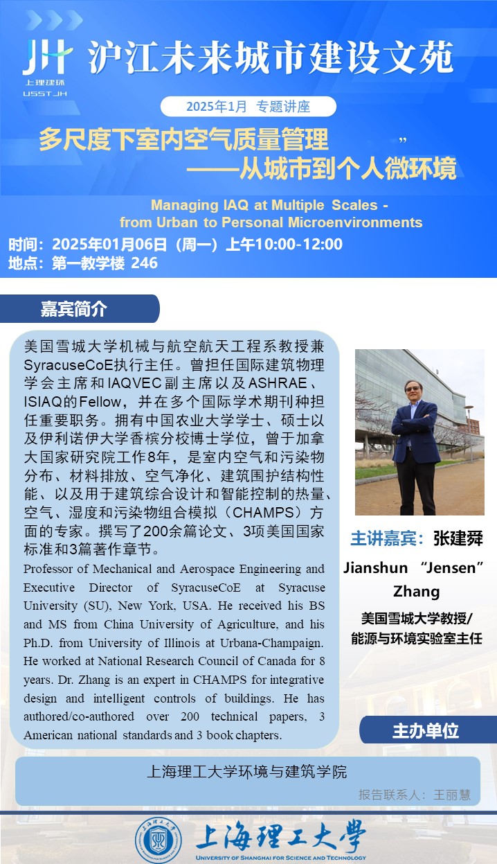 学术报告:多尺度下室内空气质量管理 ——从城市到个人微环境