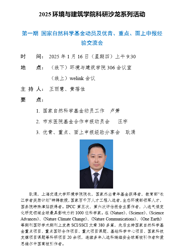 学术报告:国家自然科学基金动员及优青、重点、面上申报经验交流会