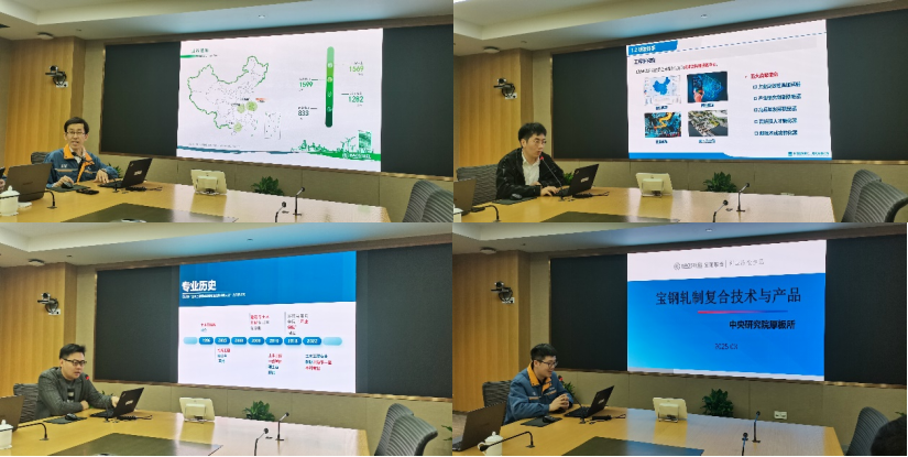交流会上,宝钢中央研究院副院长田正宏对两家单位的到来表示热烈欢迎。厚板所所长张庆峰介绍了宝钢股份和宝武中央研究院的业务及技术现状、厚板研究所的发展历史、产品研发和技术攻关能力。中建八局工程研究院张云鹏分别从集团总体情况、科技创新工作、科技发展方向等方面简要介绍了中建八局和工程研究院的基本情况,并具体介绍了公司在高性能钢材的应用案例。环境与建筑学院副院长饶平平教授介绍了土木工程系的专业历史、学科方向、科学研究及校企合作。宝钢中央研究院厚板所主任研究员孔伟代表团队介绍了宝钢轧制复合板技术和产品,并重点介绍了建筑行业以及海洋工程建设相关的产品。