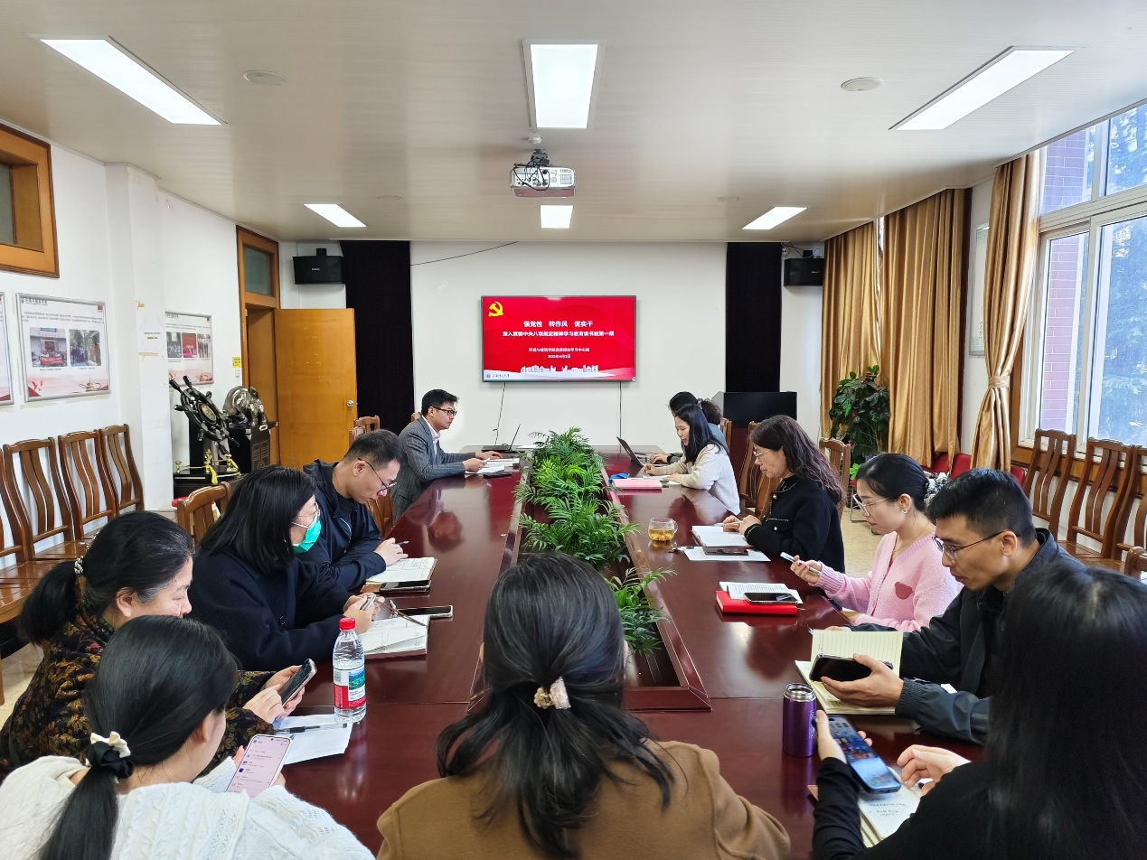 随后,学院党委委员、副院长饶平平就分管实验室工作进行主题发言,他表示,实验室安全是学院稳定运行的底线,关系到学院的生存和发展,一定要真抓实干。在实验室日常检查、维护、管理工作中,一定要转变工作作风,坚持一抓到底的决心和韧劲,严格制度执行,形成管理闭环,要有既要看“门面”也要看“后院”的态度,既要看“窗口”也要看“角落”的精神,在不断加强党的作风建设思想指引下,使学院实验室管理买上新台阶。学院党委副书记周蓉就分管就业工作进行主题发言,她表示,结合学校党委理论学习中心组深入贯彻中央八项规定精神学习教育专题辅导报告会的学习,高质量开展学生就业工作必将围绕“践行党的宗旨,做学生成长引路人”开展。首先要以人民为中心,筑牢服务育人的思想根据,通过聚焦行业需求、聚焦学生需求、聚焦政策导向为学生铺就成长之路;其次是大兴调研之风,破解就业工作的痛点难点,通过调研、针对接、真反馈准确把握时长需求和学生诉求平衡点,转变工作作风,精准把握市场需求与学生诉求平衡点;最后要强化责任担当,当好职业发展引路人,从认知维度、时间维度和价值维度引导学生将个人发展融入国家发展的大局。学院党委委员、土木教工党支部书记李秀君结合人才引进工作进行主题发言,她表示,高校人才引进作为全面深化改革的重要组成部分,既是推动学科专业改造升级的核心动力,也是中国式现代化进程中高等教育高质量发展的关键环节,作为教师党支部书记,我们要当好人才引进政策的“宣传员”,通过多渠道、多方式宣讲学校战略机遇、办学特色和引育环境,通过科研平台搭建、团队建设、项目申报等方式提供精准服务,真正做到以事业留人、以感情留人、以服务留人;其次还要发挥好“双带头人”示范作用,牵头组建“学科攻坚党小组”,创建包含学术成果、研究方向、发展潜力、团队贡献、文化适配等维度的五维评价体系,为靶向引进海外杰出人才提供科学依据,提升人才引进工作的精准度和时效性。