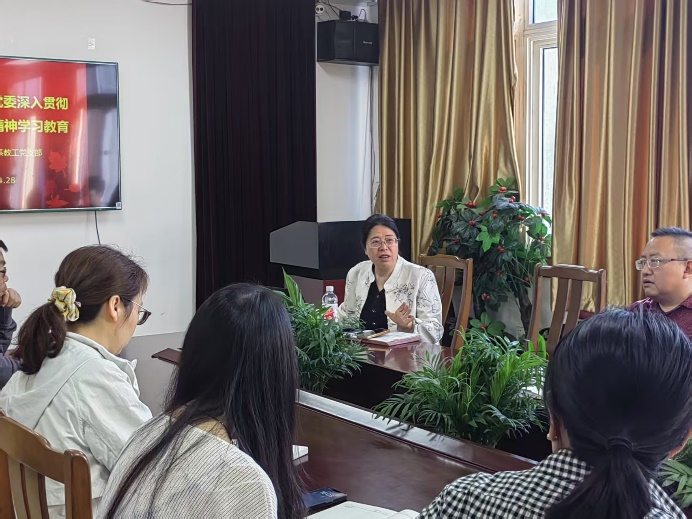 支部书记黄蓓佳总结了学习内容,并探讨了如何推动学院与其他院校合作、争取科研资源;党支部副书记李亮进一步强调了学习要点,具体介绍了中央八项规定精神要点;环境系系主任陶红结合学院发展谈了系里的改进方向。党员老师们随后进行了交流,表示党课内容深刻、富有启发,对于如何将八项规定的精神贯彻到实际工作中有了更清晰的认识。今后将更加自觉对照中央八项规定要求,查找问题,提出解决方案,切实增强党性修养和纪律意识,推动学院发展。