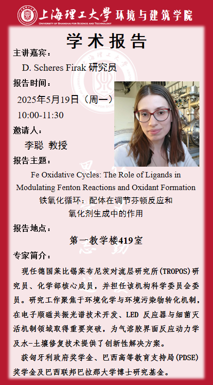 学术报告:铁氧化循环——配体在调节芬顿反应和 氧化剂生成中的作用