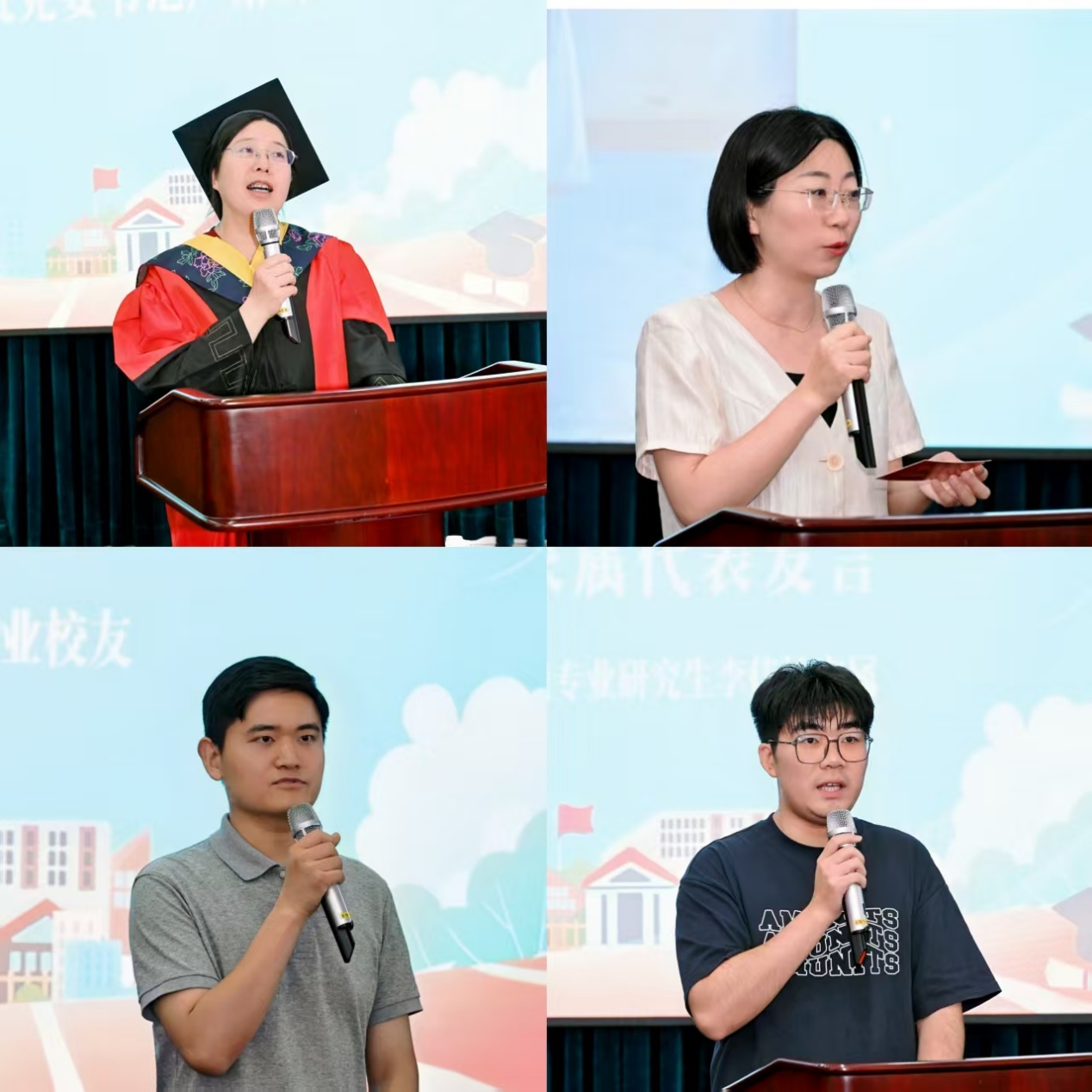 这份对青春的诠释,恰如家属代表郑智元在随后发言中所描述的那样——“成长不是独行的旅程”。他动情地回顾了陪伴李佳怡度过研究生岁月的点点滴滴,那些挑灯夜战的夜晚、实验成功的喜悦、论文通过的激动,都化作最珍贵的记忆。他的发言不仅传递着对毕业生的祝福,更道出了所有家属对母校培育之恩的由衷感谢。