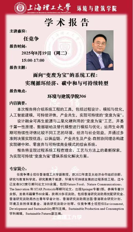学术报告:面向“变废为宝”的系统工程: 实现循环经济、碳中和与可持续转型