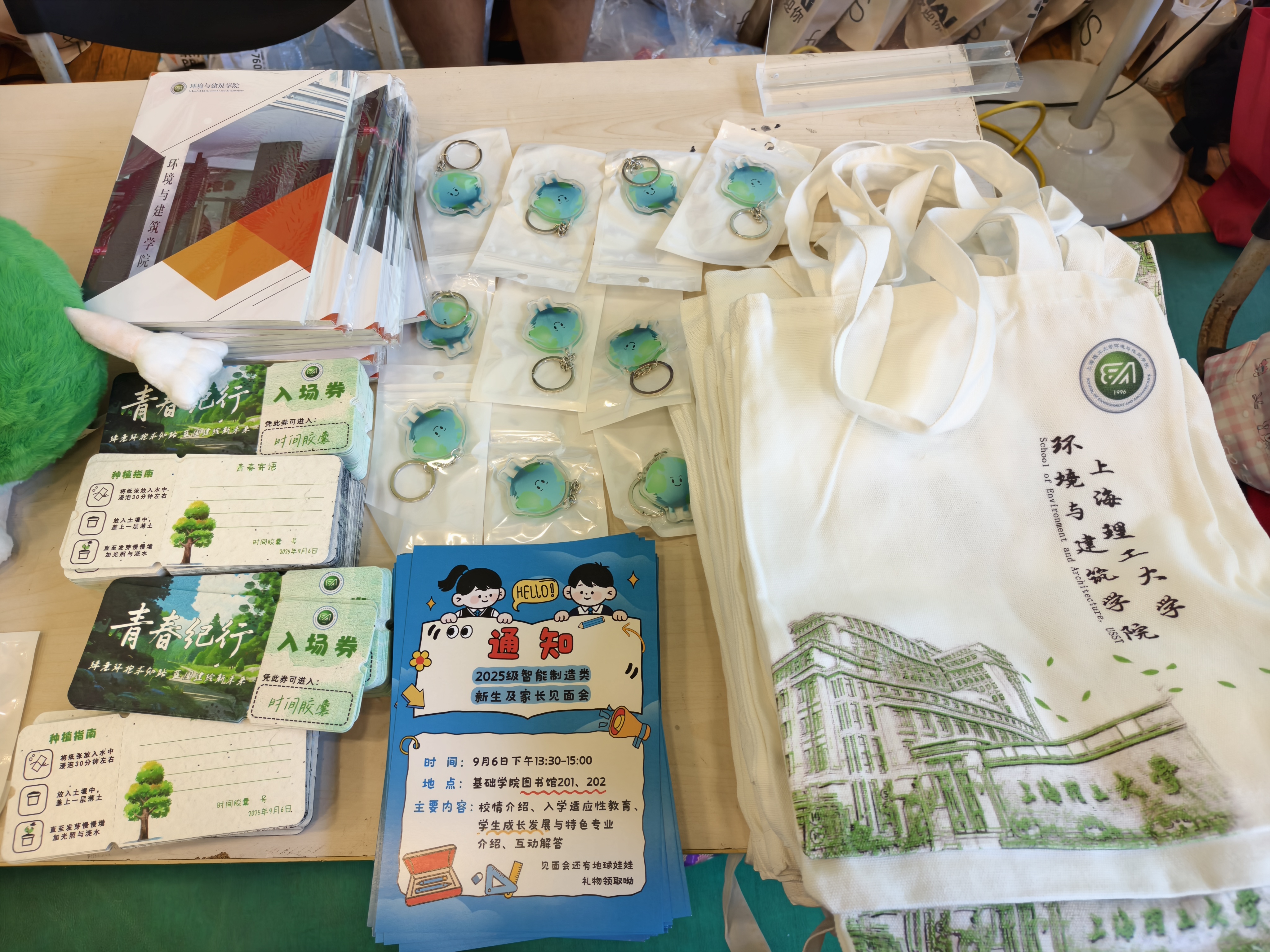 环建学院的学长学姐志愿者们化身人形导航仪+百事通,用专业又有趣的校园问题解答,把报到流程变成了大型破冰现场。不少同学的目光不由自主地被学院环保主题的地球娃娃吸引。在这份学院特别定制的迎新礼包里,除了实用的环建主题帆布袋和学习用品,还藏着学院的小巧思:可种植的种子书签印着青春学子们对未来的寄语。当新生们打开这份绿色惊喜时,收获的不仅是礼物,更是一份可持续成长的约定。