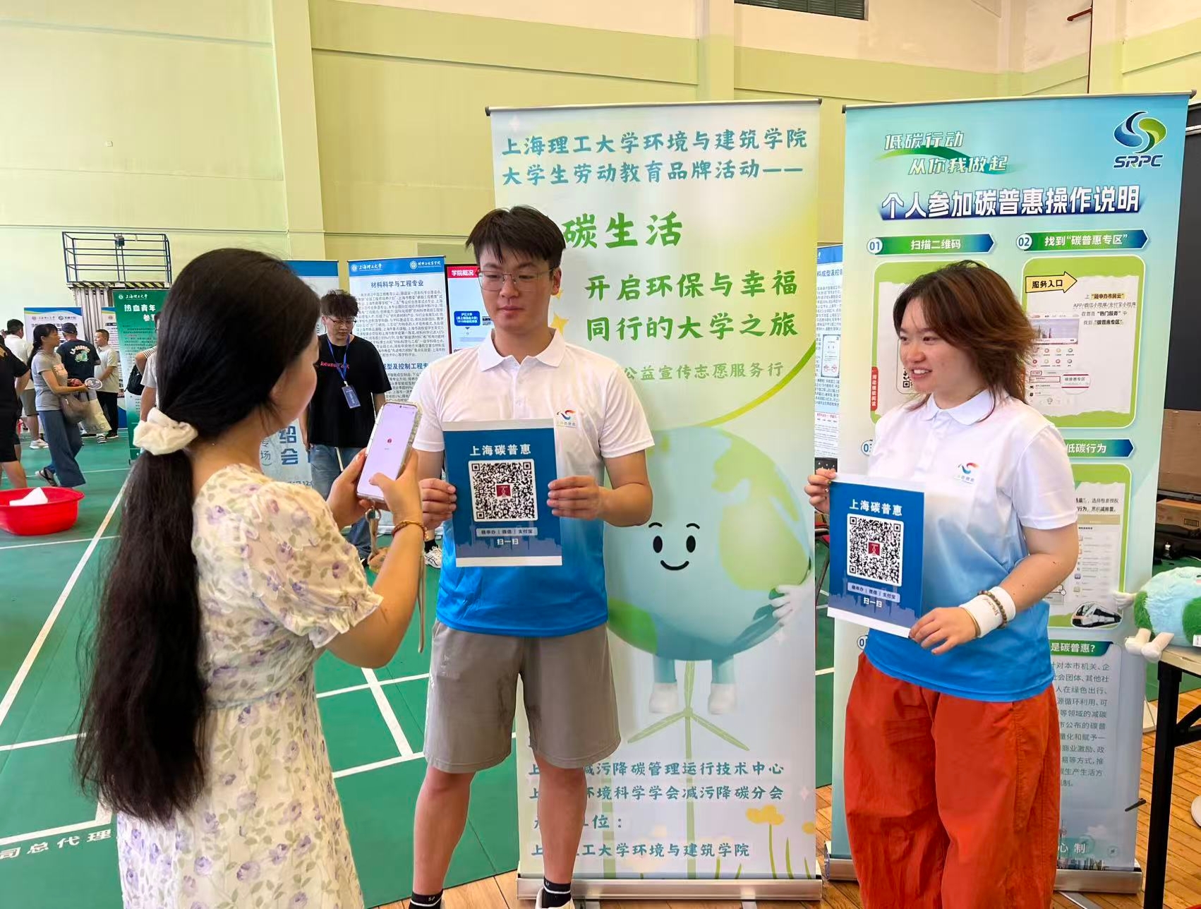 迎新报道现场,这边拿着地球模型钥匙扣的新生正和志愿者自拍,这边领取完生态主题环保袋的同学已经加入碳普惠减碳小课堂。上海理工大学环境与建筑学院联合上海环境学会、减污降碳中心在新生迎新中融入大学生劳动教育品牌活动——碳普惠教育,旨在通过专业教育与低碳实践相结合,为“双碳”目标培养具有生态文明素养的新时代环境人才。