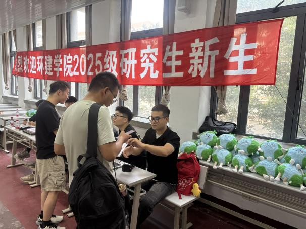 在学院特别定制的迎新礼包里,新生们收获了实用的环建主题鼠标垫和研究生手册。引人注目的还有那只萌态可掬的环保主题地球娃娃,这个兼具科普意义与纪念意义的小家伙,瞬间成为新生们争相合影的焦点。