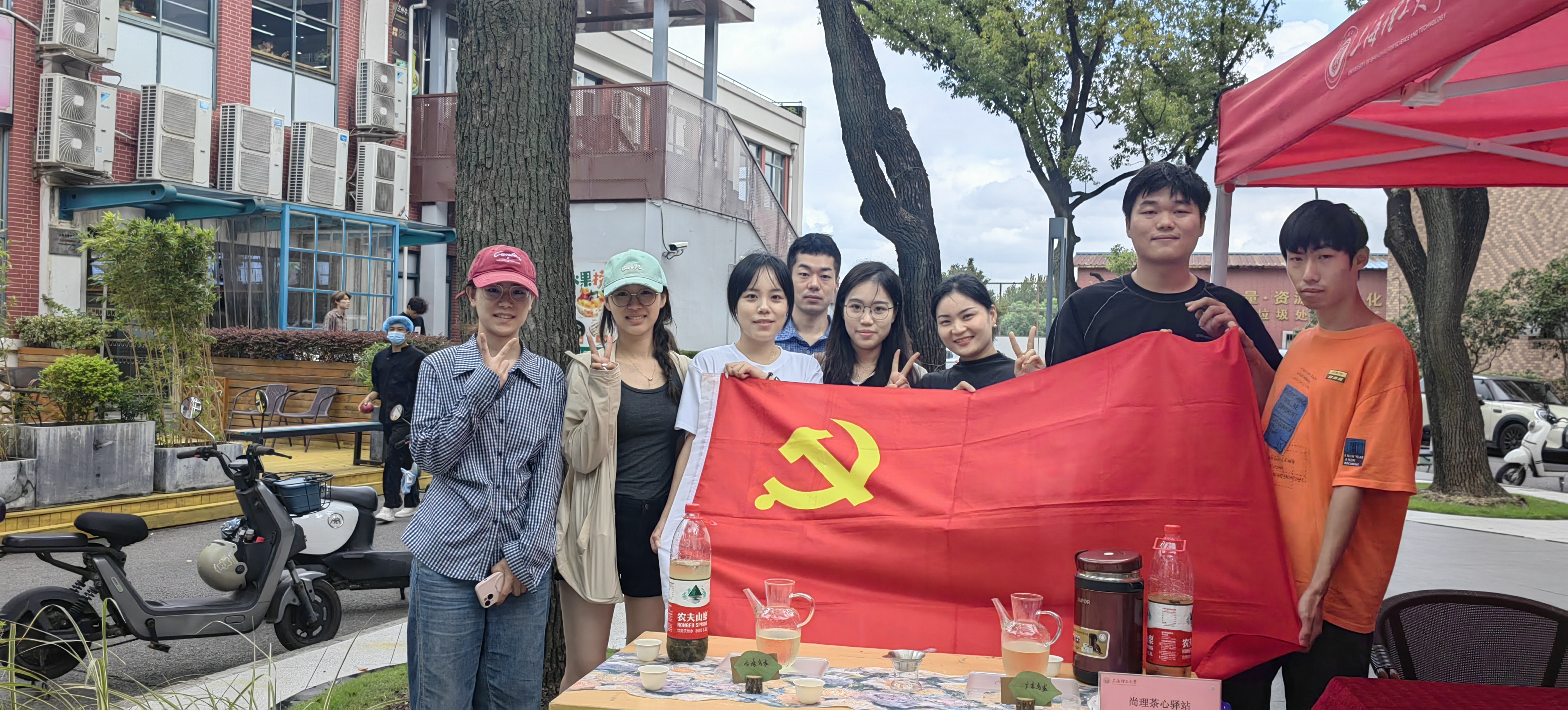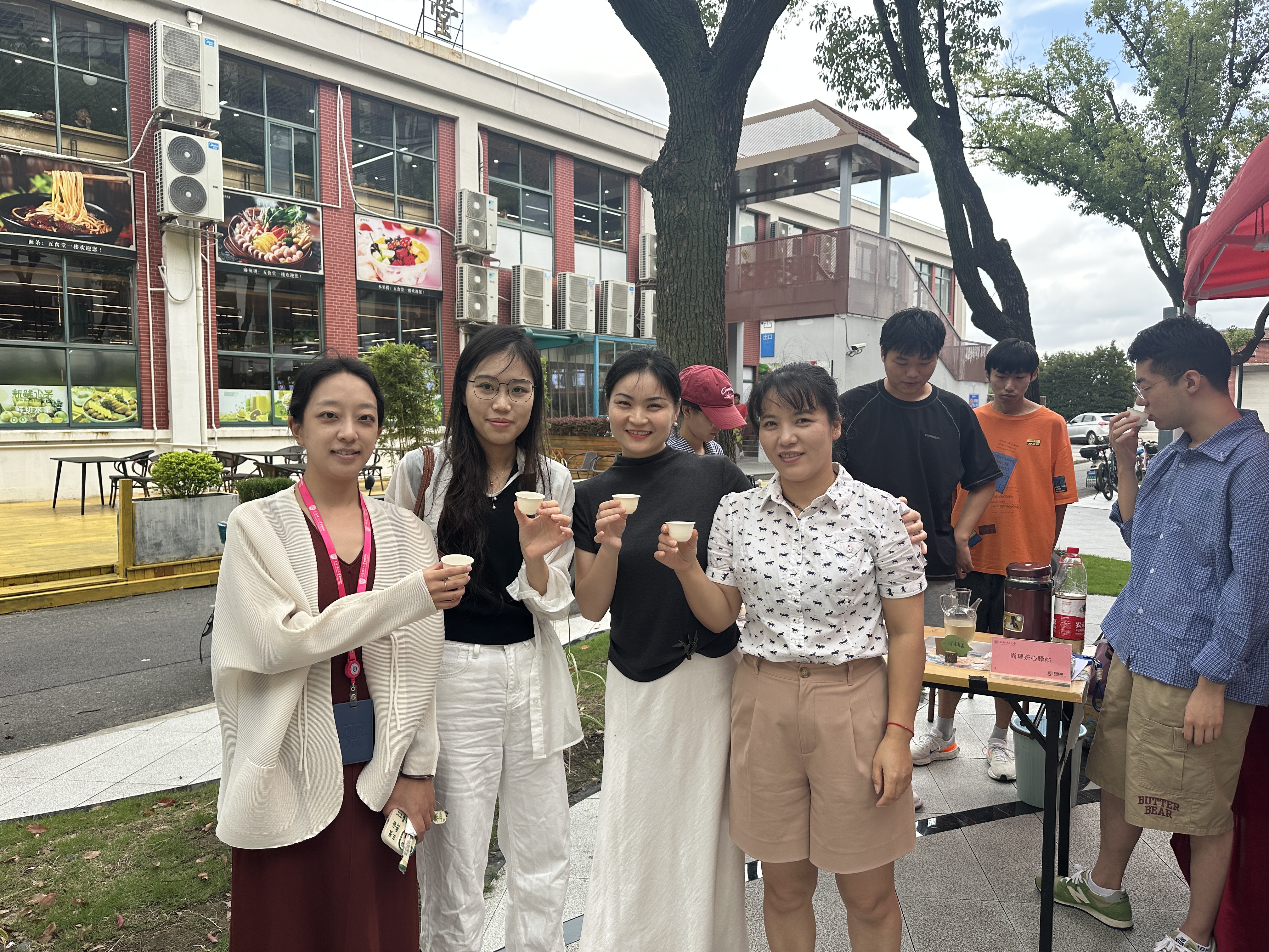 2025年9月18日中午,上海理工大学五食堂门口茶香袅袅,人流如织。一场由环境与建筑学院土木专硕、土木学硕及本科生党支部、学院心理分中心联合主办的“茶心驿站”便民服务活动在此温馨举办,为过往师生带来一场夏末清凉的茶文化体验。