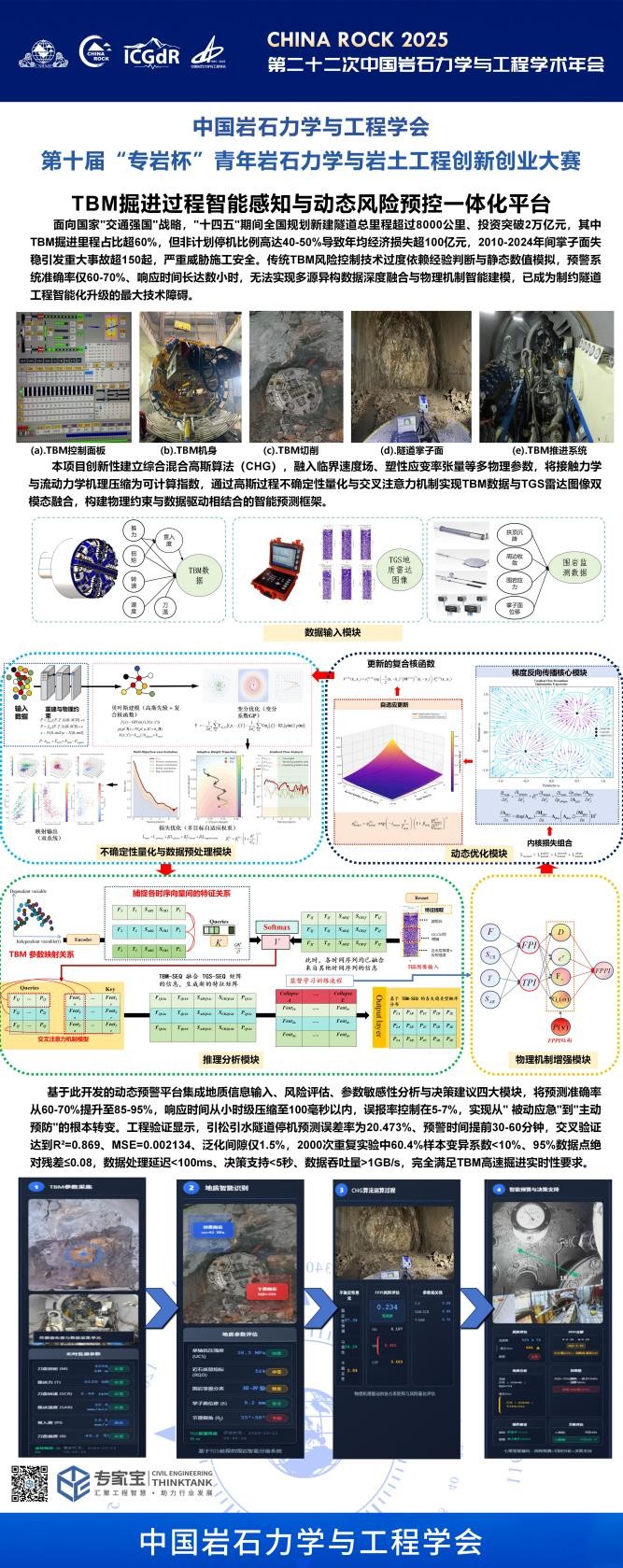 管文灿同学的参赛项目《TBM掘进过程智能感知与动态风险预控一体化平台》,聚焦于隧道掘进过程中对风险的智能感知与动态预警。这一平台不仅为隧道掘进等关键工程提供了安全保障,也通过AI技术与大数据分析,构建了全流程的智能监控体系,具有显著的工程应用价值和创新意义。