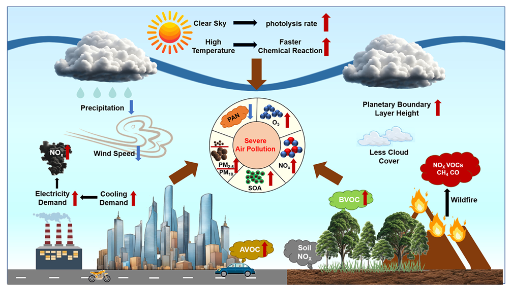随着全球变暖加剧,2024年地球经历有记录以来最热夏季,热浪的频率、持续时间与强度显著上升,不仅威胁人类健康、经济发展与粮食安全,还通过复杂大气过程加剧臭氧(O₃)和细颗粒物(PM₂.₅)污染。然而现有研究多聚焦特定区域短期热浪事件,缺乏全球尺度综合分析,且对热浪与干旱、野火等复合极端事件的协同影响研究不足,成为环境治理精准化的关键瓶颈。