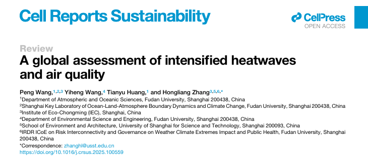 近日,上海理工大学环境与建筑学院张宏亮教授团队联合复旦大学副教授王芃,在国际顶尖可持续发展领域期刊《Cell Reports Sustainability》发表题为“A global assessment of intensified heatwaves and air quality”的综述论文,为气候变化背景下的大气污染防治提供了重要科学参考。