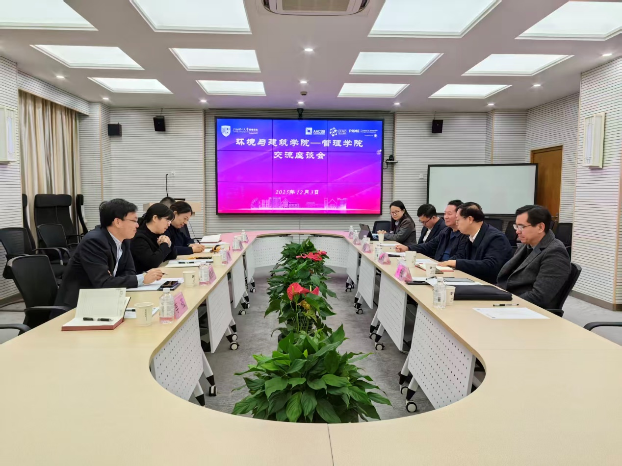 2025年12月3日上午,上海理工大学环境与建筑学院调研组一行走访管理学院,围绕学科建设、国际合作、学校综合改革等核心议题开展专题座谈。本次座谈会在管理学院经管大楼会议室召开,由管理学院院长、党委副书记赵来军教授主持,环境与建筑学院党委书记卢萧、管理学院党委书记马静波及双方相关负责人出席会议并深入交流。