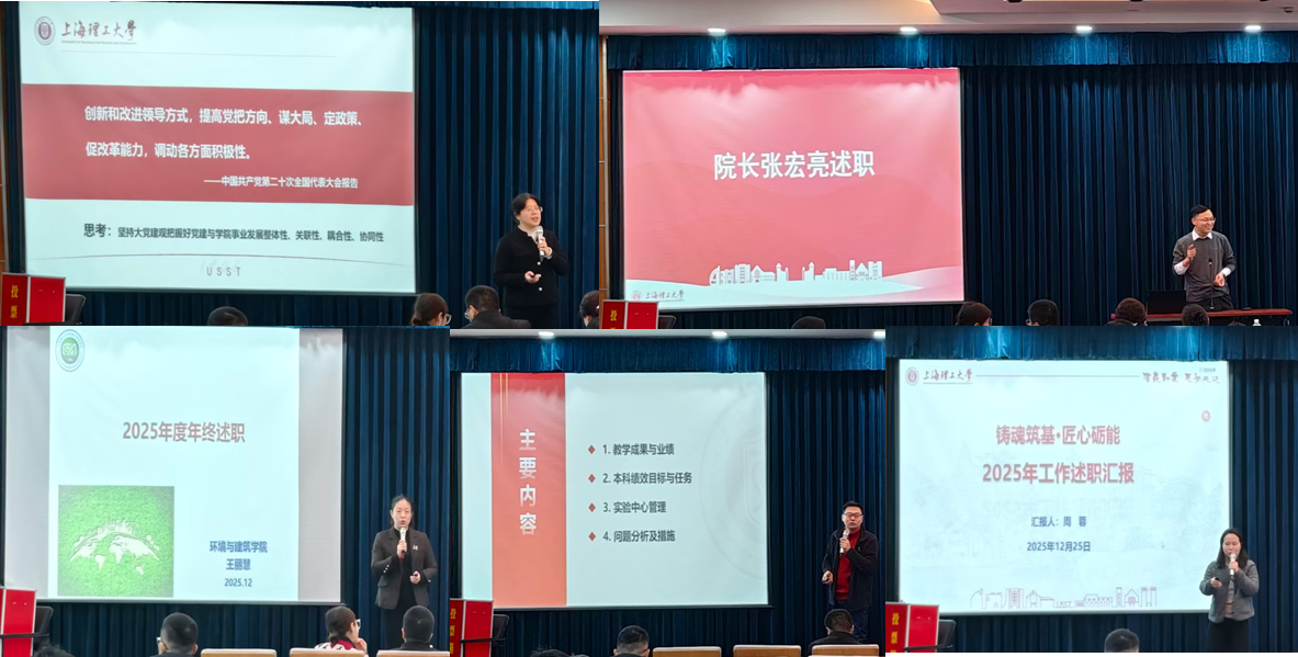“只要在路上,总能看到想要的风景!”此次环境与建筑学院领导班子述职大会既全面总结了学院2025年各项事业取得的扎实成效,也展现了学院领导班子主动识变、应变、求变的责任担当,为学院在“十五五”规划开局关键期凝聚起上下同心、笃行实干的强大合力,助力学院在高质量发展道路上阔步前行。