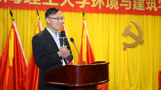 岳海洋代表学校党委向新当选中共上海理工大学环境与建筑学院第三届委员会的委员同志们表示热烈祝贺。他指出,当前正值学校全面贯彻第九次党代会精神、深入推进新一轮综合改革的关键时期,环境与建筑学院召开党员大会开展党委换届工作,是学院政治生活和事业发展中的一件大事。他结合二十届四中全会精神宣讲、结合环境学院当前面临的形势和任务,结合学校对新一届党委提出的要求,提了三点意见。