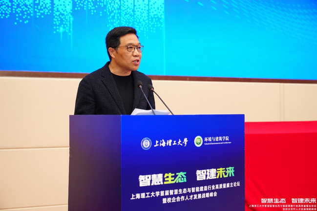 上海理工大学党委书记王凌宇在开幕式致辞中表示,学校始终以综合改革为抓手,聚焦行业发展需求,致力于培养适应新时代智慧生态与智能建造领域的复合型人才。此次论坛既是学校深化产教融合、校企合作的重要举措,也是推进教学改革、优化人才培养体系的关键实践,旨在通过校地企多方联动,打通人才培养“最后一公里”,让教育教学更贴近行业实际、更契合市场需求。王凌宇表示,希望以此次峰会为新起点,在三个方面深化合作:一是共筑创新高地,共建研发平台,集中力量突破行业关键技术瓶颈;二是共育时代新人,推动人才培养标准与行业用人标准精准对接,实现校企“双导师”制常态化;三是共享发展成果,促进科研成果转化与应用,实现校企互利共赢。同时,也希望在座的同学们珍惜这次宝贵的机会,在与业界大咖的交流中开阔视野、找准定位,将个人成长融入行业进步,共同为智慧生态与智能建造事业贡献力量。