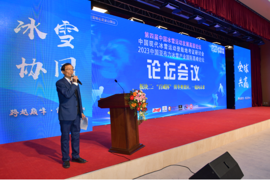 国家体育总局冬季运动管理中心、中国体育科学学会体育产业分会、省体育局、省文化和旅游厅、哈尔滨体育学院领导出席论坛开幕式并致辞。