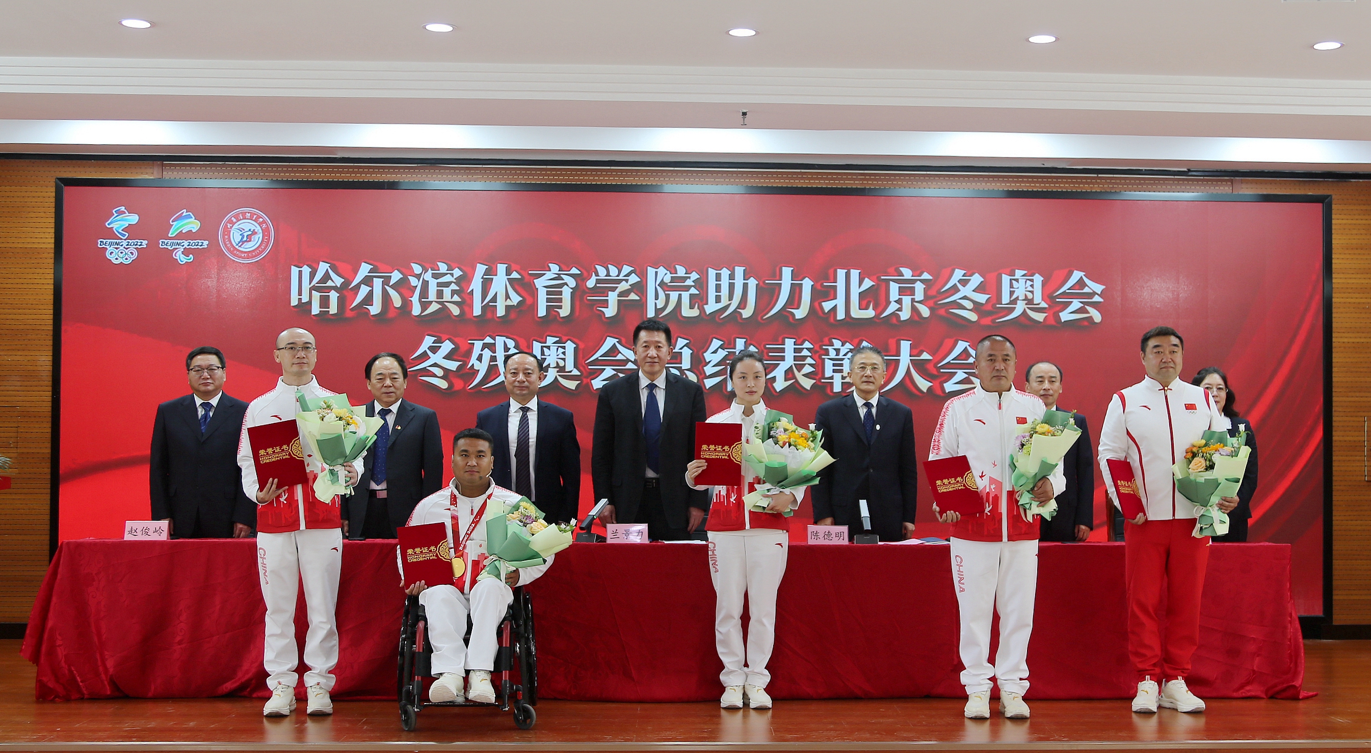 他指出,举办北京冬奥会、冬残奥会是以习近平同志为核心的党中央作出的重大决策,是我国重要历史节点的重大标志性活动。在习近平总书记亲自谋划、亲自部署和亲自推动下,我国秉承“绿色、共享、开放、廉洁”的办奥理念和“简约、安全、精彩”的办赛要求,在世纪疫情与百年变局交织叠加的艰难时刻,向世界奉献了简约、安全、精彩的北京冬奥会、冬残奥会,兑现了“两个奥运”同样精彩的庄严承诺,彰显了奥林匹克精神和中华体育精神。在北京冬奥会、冬残奥会筹办过程中,我校认真贯彻落实习近平总书记重要指示精神和省委、省政府“实现三个40%”的目标要求,把服务保障备战作为重大政治任务,坚持“北京冬奥需要什么、我们就支持什么,北京冬奥需要我们做什么、我们就做好什么”,做到了举全校之力支持、服务、奉献、参与冬奥。我校有96名师生助力服务冬奥,向党和国家交出了冬奥会3金2铜,冬残奥会12金6银10铜的优异答卷,人才贡献率居全国体育院校之首,成为唯一一所荣获“突出贡献集体”荣誉称号的高校,教练员朱德文被授予“北京冬奥会、冬残奥会突出贡献个人”称号。这些成绩的取得,全面彰显了具有66年办学历史的哈体院在人才培养、竞赛训练、科技助力、场馆保障等方面的精湛水平,充分证明了哈体院作为冰雪体育强校在冰雪体育研究和冰雪运动实践方面的雄厚实力。我们哈体人应该为此骄傲和自豪!