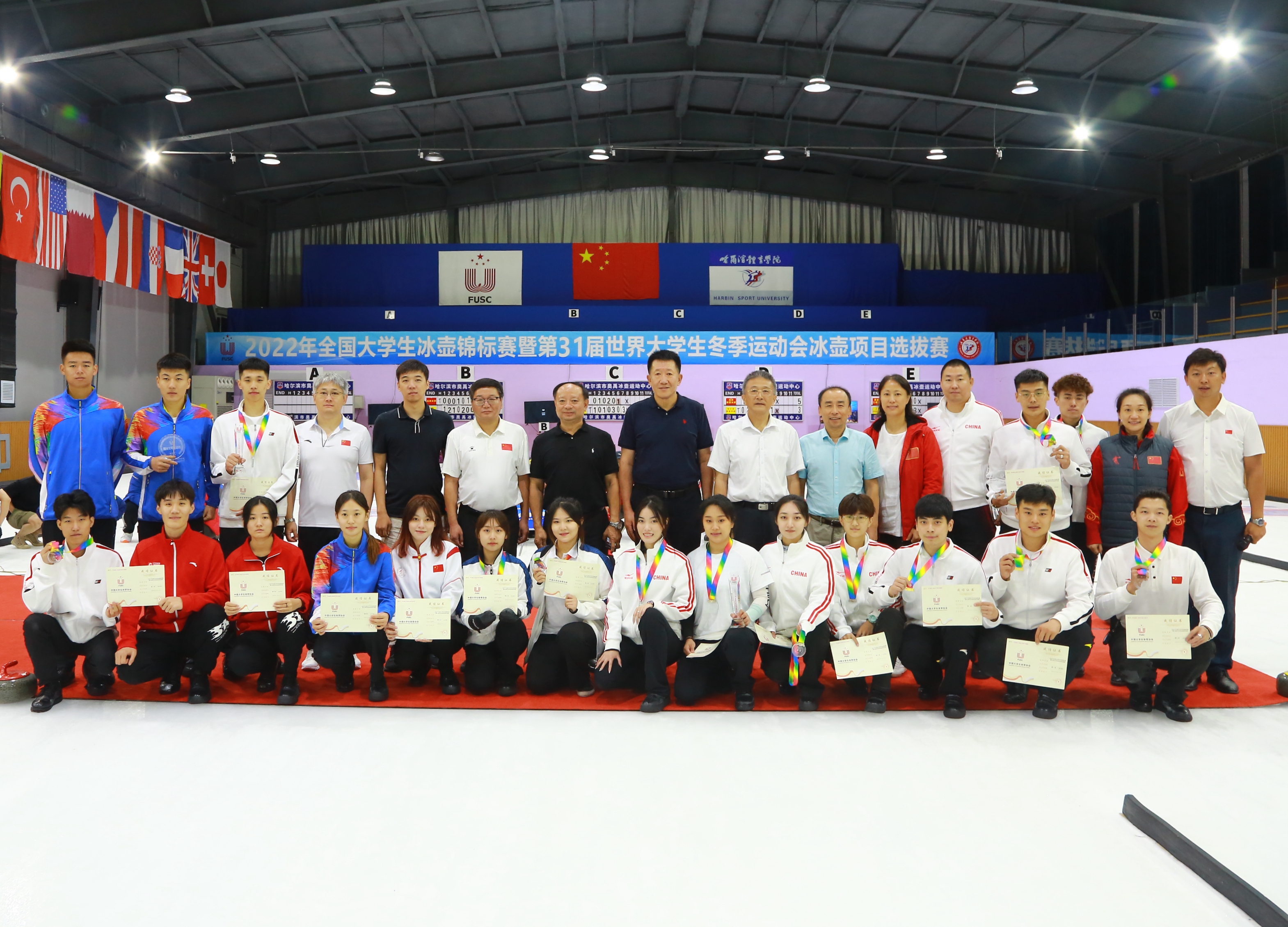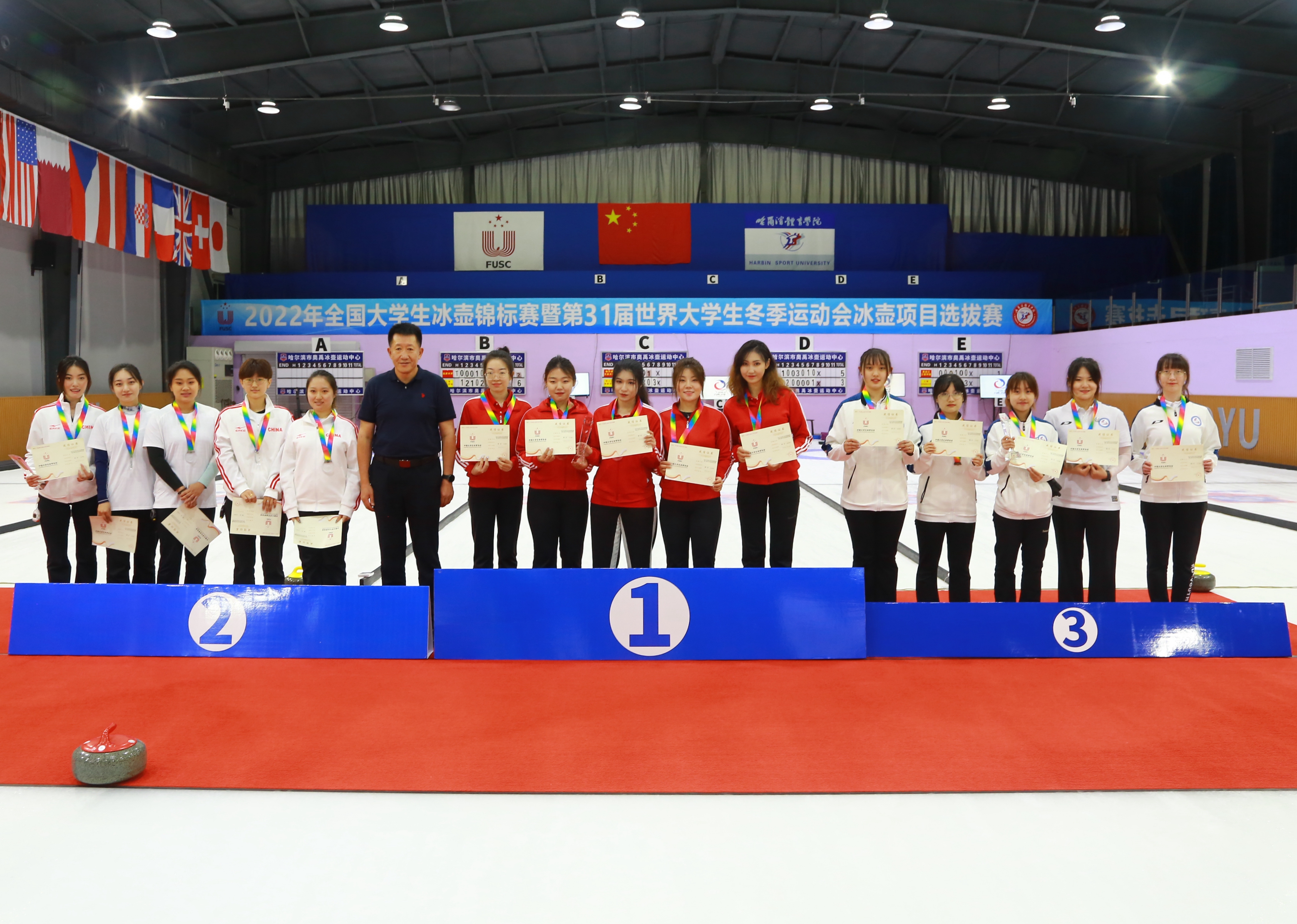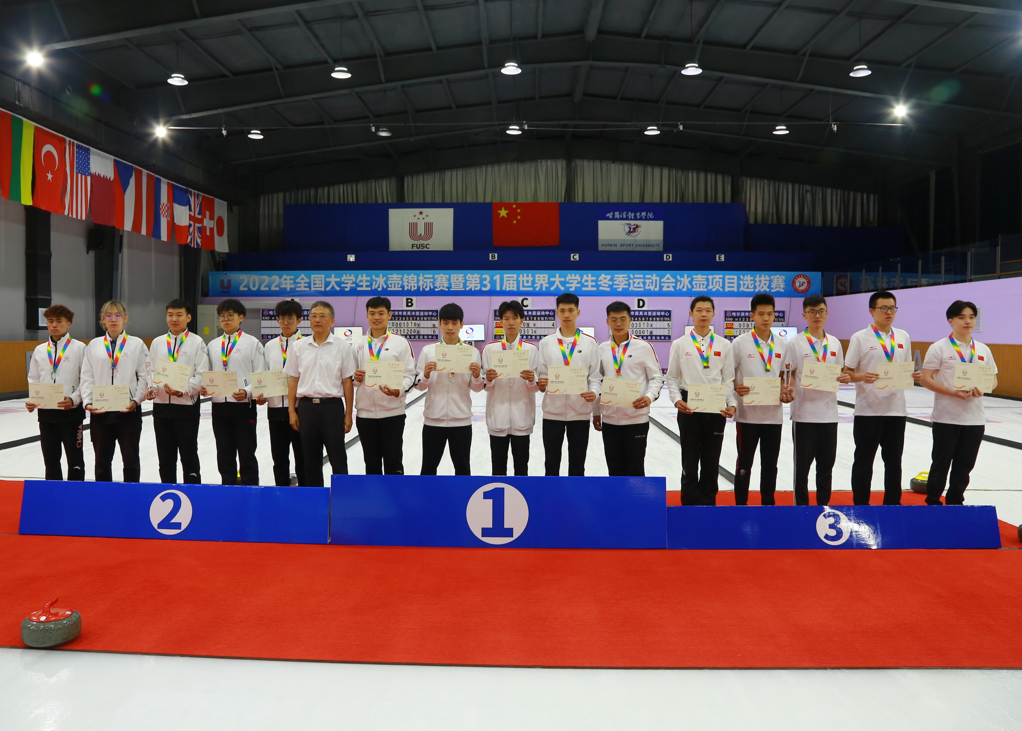 本届赛事得到了教育部、黑龙江省体育局、黑龙江省教育厅、哈尔滨市平房区政府、黑龙江省学生体育协会、奥禹冰壶运动中心及业界同仁们的鼎力支持。赛事期间,哈尔滨体育学院作为中国大学生体育协会冰上运动分会主席单位,为各参赛队提供了优质的竞赛条件和服务,成功举办冰上运动分会年会,为我国冰上运动的发展建言献策。同时组织参赛队进行“红色+科技+文化”的爱国主义教育活动,参观侵华日军第七三一部队遗址、哈尔滨机器人智能馆、夏青文化艺术馆。使大家切身感受到了革命道路的曲折和革命成果的来之不易,并且对祖国的强大、科技的振兴而自豪。运动员们纷纷表示一定会坚定理想信念,强化责任担当、传承并弘扬中华民族伟大精神,把本次赛事、活动的收获转化为今后拼搏努力的动力,不断提升自己的竞技水平,顽强拼搏再创佳绩!为祖国的繁荣昌盛贡献力量!